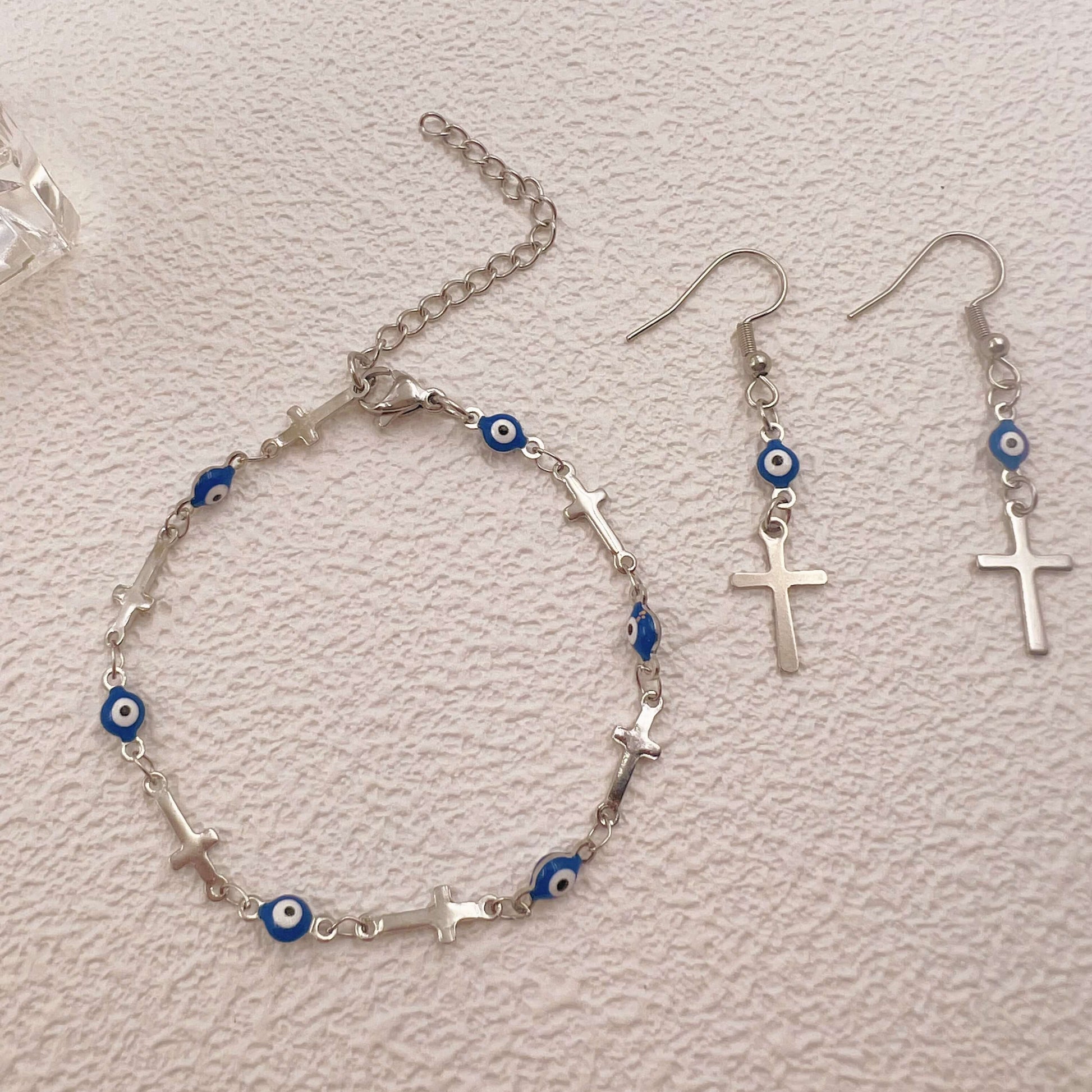 1 × Silver-tone evil eye + cross charm bracelet (with extender)
