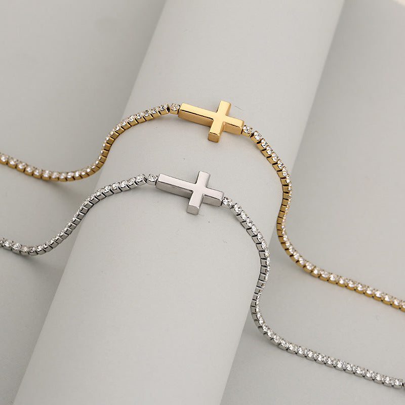 Sparkly centerpiece: Rhinestone cross charm for a bold, cute look